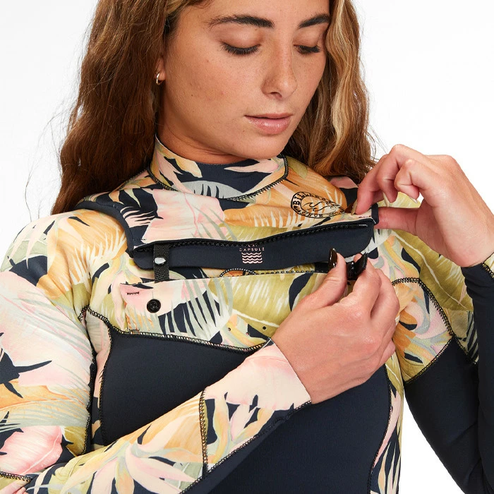 Conçue par Billabong pour les surfeuses qui n’ont pas peur de l’hiver, la combinaison Salty Dayz 5/3 allie performance et chaleur pour un joli look au pic.
