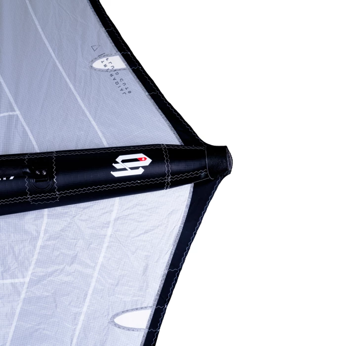 | Les poignées plus rigides et plus légères améliorent la réponse et la maniabilité de la wing. Elles sont démontables en cas de casse. | L’utilisation de Dacron RXL Rigid 160 inextensible au niveau des coutures et des renforts permet de gonfler avec plus de pression. Le Dacron RXL Light 140 robuste et léger est aussi utilisé. | Les découpes ont été retravaillées pour fluidifier l’écoulement de l’air et rigidifier la structure. La ing offre une meilleure tenue et moins de déformation. |